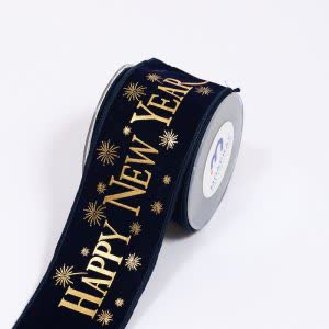 Κορδέλα Χριστουγεννιάτικη Happy New Year ροζ 8 εκ. x 9 μ.