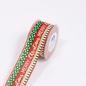 Κορδέλα Χριστουγεννιάτικη Merry Christmas πουά – ριγέ πράσινο & κόκκινο 6 εκ. x 9 μ.