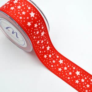 Κορδέλα Χριστουγεννιάτικη γκρο με αστεράκια κόκκινη 3,8 cm. x 9 m.