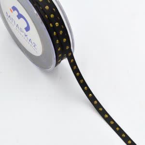 Κορδέλα Χριστουγεννιάτικη γκρο με ανάγλυφο πουά Μαύρο / Χρυσό 0,6 cm. x 23 m.