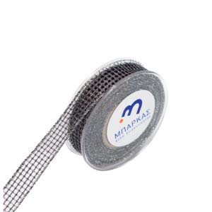Κορδέλα Χριστουγεννιάτικη δίχτυ με γκλίτερ ασημί 2,3 cm. x 9 m. (1 τεμ.)