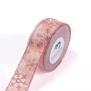 Κορδέλα Χριστουγεννιάτικη με χιονονιφάδες και γκλίτερ ροζ 4,3 εκ. x 9 μ. (1 τεμ.)