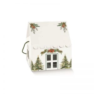 Κουτί Σπιτάκι Χάρτινο λευκό με έλατο και κορδόνι 23 εκ. Χ 23 εκ. Χ 26 εκ. (1 τεμ.)