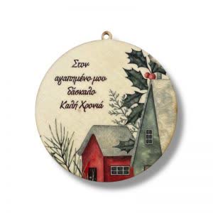 Στον αγαπημένο μου δάσκαλο Καλή Χρονιά μπάλα ξύλινη 9εκ. με τρύπα (1τεμ.)