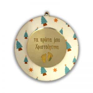 Τα πρώτα μου Χριστούγεννα μπάλα ξύλινη σε γαλάζιο 9εκ. με τρύπα (1τεμ.)