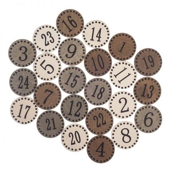 Αριθμοί ξύλινοι στρογγυλοί αυτοκόλλητοι 1-24 3,5εκ. – 24τμχ.