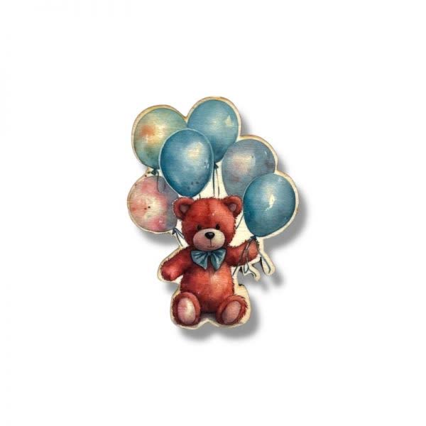 Αρκουδάκι με μπαλόνια ξύλινο διακοσμητικό με τρύπα.