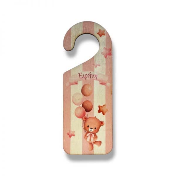 Αρκουδάκι με ροζ μπαλόνια Door Hanger ξύλινο ριγέ.