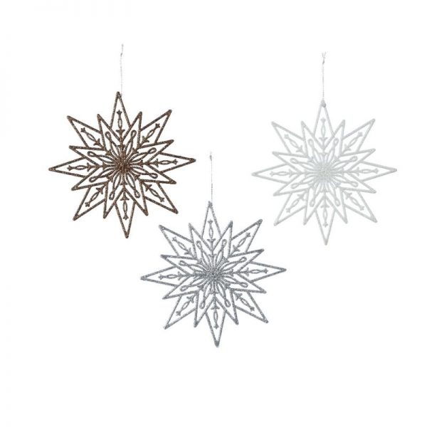 Στολίδι Χριστουγεννιάτικο αστέρι κρεμαστό με γκλίτερ σε 3 χρώματα (1 τεμ.)