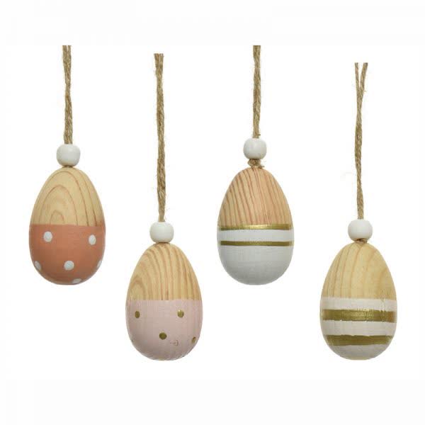 Πασχαλινά Αυγά ξύλινα διακοσμητικά κρεμαστά με χρυσές λεπτομέρειες.