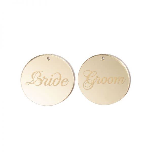 Bride – Groom στρογγυλό plexiglass χρυσό με τρύπα 4,5 εκ. (2 τεμ.)