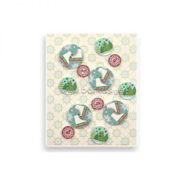 Χριστουγεννιάτικα ξύλινα κουμπιά εμπριμέ (12τμχ.)