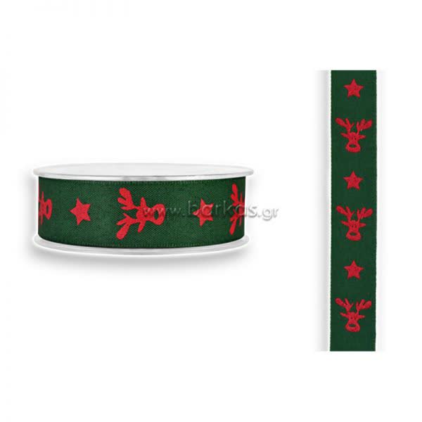 Χριστουγεννιάτικη κορδέλα με ελαφάκι πράσινη.