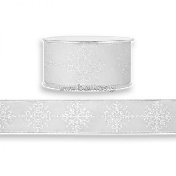 Κορδέλα Χριστουγεννιάτικη με χιονονιφάδες λευκή