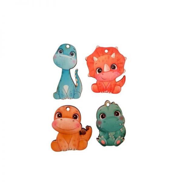 Δεινοσαυράκια ξύλινα σε 4 σχέδια με τρύπα 5 εκ. (4 τεμ.)