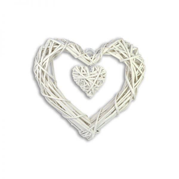 Διπλή καρδιά λευκή μπαμπού. Διάσταση 30εκ.