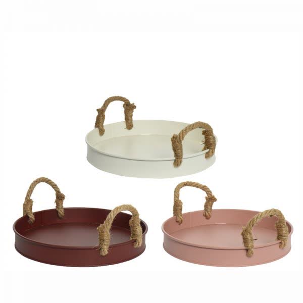 Δίσκος μεταλλικός με χερούλι από σκοινί σε 3 χρώματα 30 εκ. (1 τεμ.)