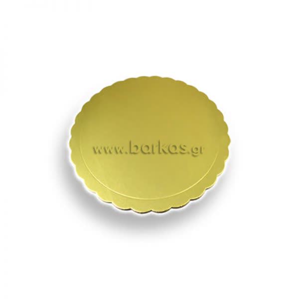 Βάση στρογγυλή για γλυκά από σκληρό, ενισχυμένο χαρτόνι, με χρυσή επένδυση.