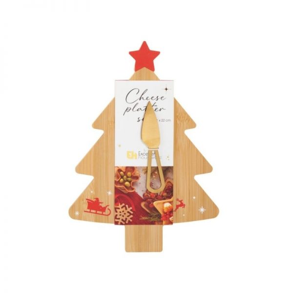 Δίσκος ξύλινος δεντράκι – πλατώ τυριών με αξεσουάρ σε 2 σχέδια 31 εκ. (1 τεμ.)