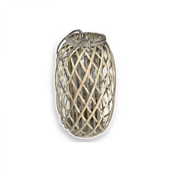 Φανάρι από μπαμπού σε φυσικό χρώμα, με εσωτερική γυάλα.