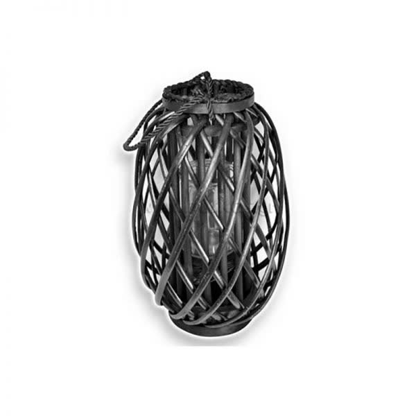 Φανάρι από μπαμπού σε μαύρο χρώμα, με εσωτερική γυάλα.