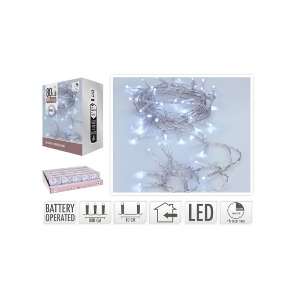 Φωτάκια led 80 λευκό 30 εκ. με χρονοδιακόπτη (1 τεμ.)