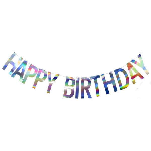 Γιρλάντα με φράση Happy Birthday ιριδίζουσα