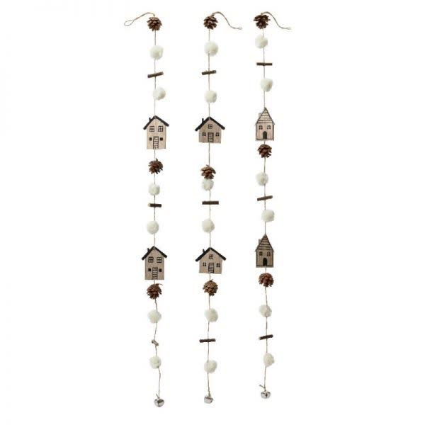 Γιρλάντα με ξύλινα σπιτάκια, κουκουνάρια και πονπον σε 3 σχέδια 95 εκ. (1 τεμ.)