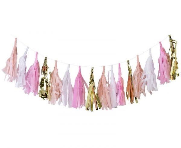 Γιρλάντα Tassel με φούντες Χρυσό/ Λευκό / Ροζ – 2μ