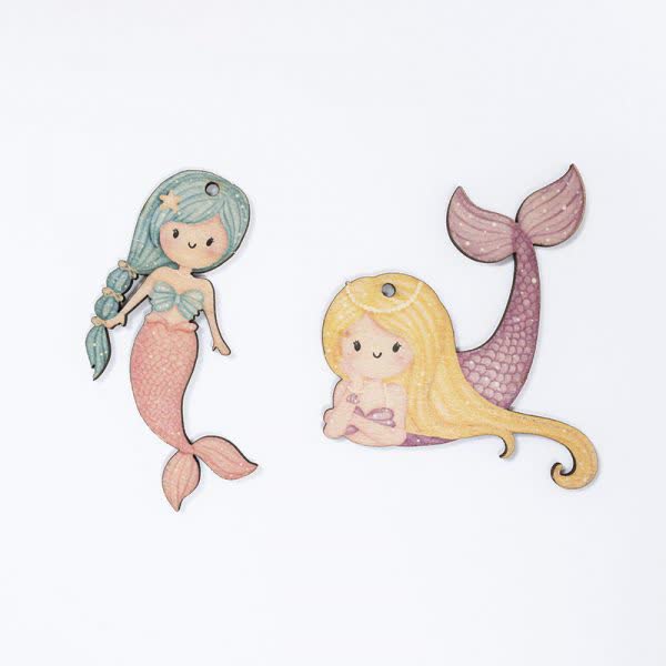 Γοργόνες ξύλινες σε 2 σχέδια με τρύπα 8 εκ. (2 τεμ.)
