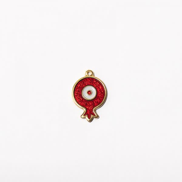 Γούρι μεταλλικό ρόδι ματάκι χρυσό με κόκκινο σμάλτο
