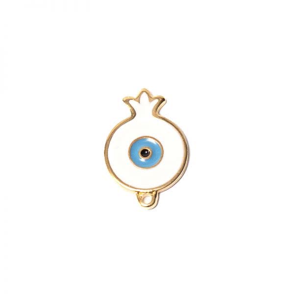 Γούρι μεταλλικό ρόδι ματάκι χρυσό με λευκό σμάλτο