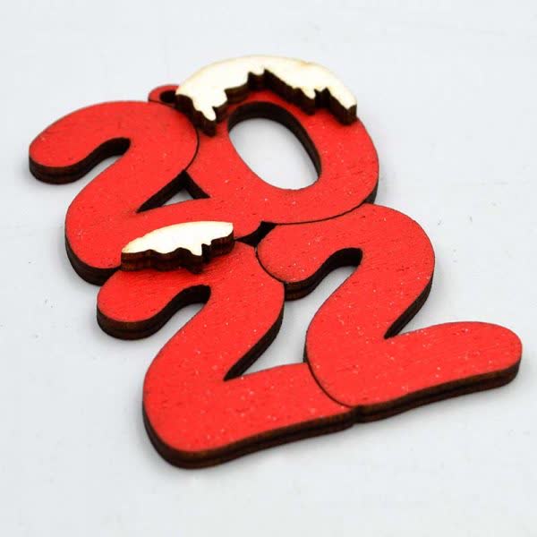 Γούρι ξύλινο 2022 κόκκινο με χιόνι