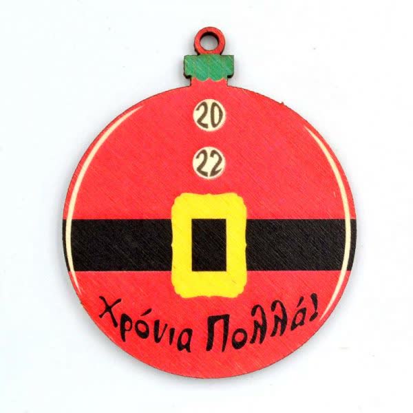 Μπάλα Ξύλινη Στολή Αγ. Βασίλης Χρόνια Πολλά 6 εκ. (2 τεμ.)