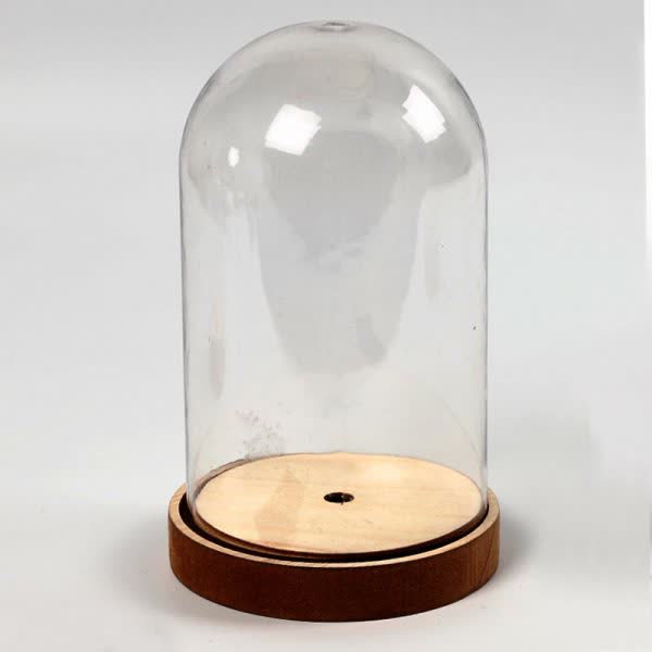 Γυάλινη διακοσμητική καμπάνα με ξύλινη βάση