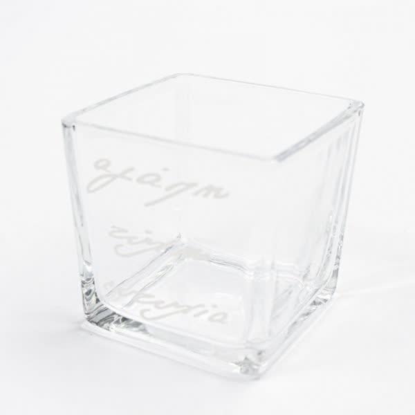Βάζο γυάλινο – κύβος με σχέδιο ευχές 8 εκ. x 8 εκ.