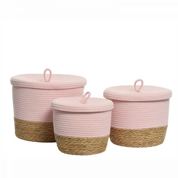 Καλάθι ψάθινο ροζ με κορδόνι και καπάκι
