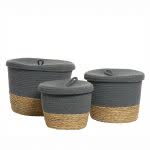 Καλάθι ψάθινο σκούρο γκρι με κορδόνι και καπάκι