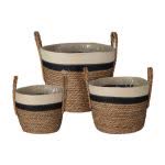 Καλάθι ψάθινο με κορδόνια και χερούλια τρίχρωμο 28 εκ.