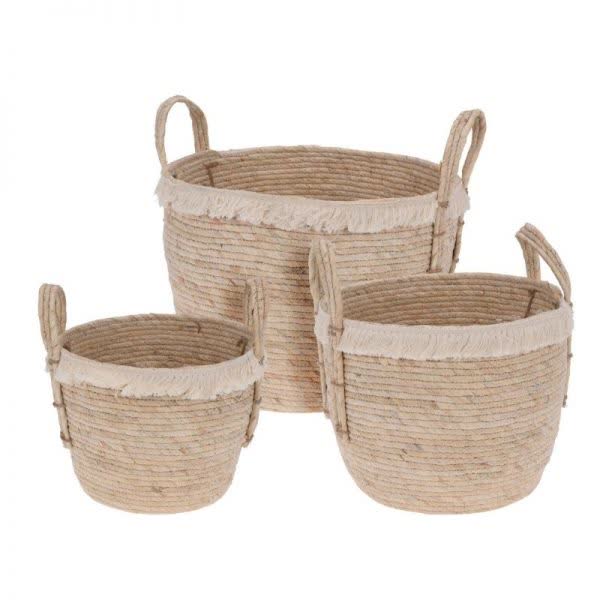 Καλάθι πλεκτό φυσικό/ λευκό με διακοσμητική τρέσα και χεράκια