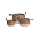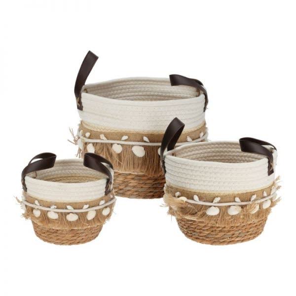 Καλάθι πλεκτό ψάθινο δίχρωμο με δερμάτινα χεράκια και κοχύλια 29 εκ. x 29 εκ. x 28 εκ. (1 τεμ.)