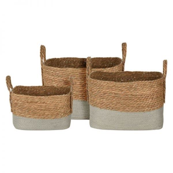 Καλάθι πλεκτό ψάθινο δίχρωμο με χεράκια 40 εκ. x 31 εκ. x 24 εκ. (1 τεμ.)