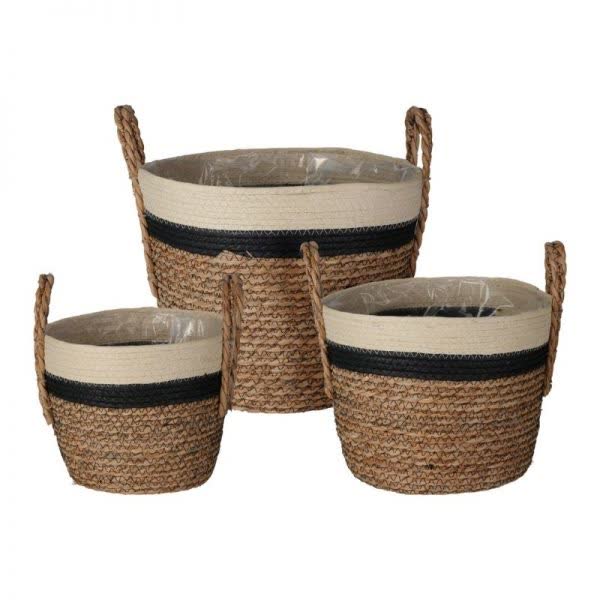 Καλάθι πλεκτό ψάθινο τρίχρωμο με χεράκια