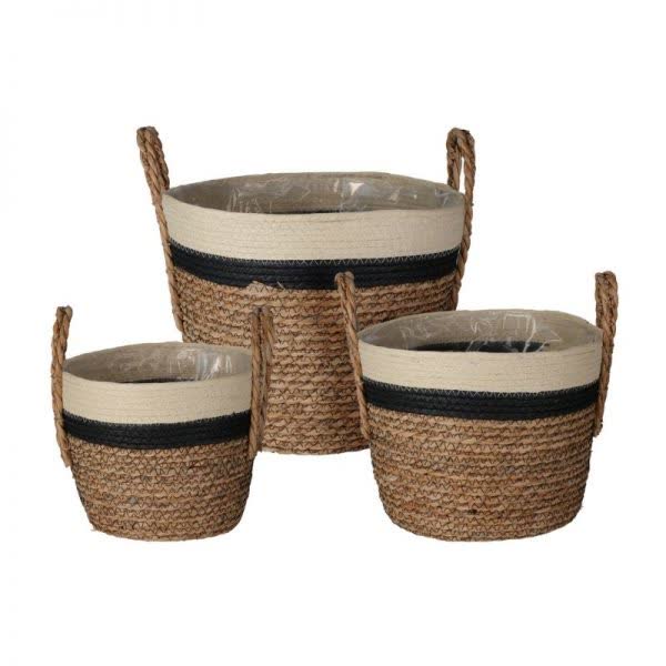 Καλάθι πλεκτό ψάθινο τρίχρωμο με χεράκια 33 εκ. x 33 εκ. χ 35,5 εκ. (1 τεμ.)