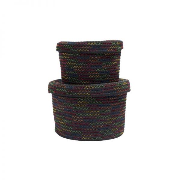 Καλάθι βαμβακερό με καπάκι μαύρο με χρωματιστές ραφές 13,5 εκ. x 21,5 εκ. (1 τεμ.)