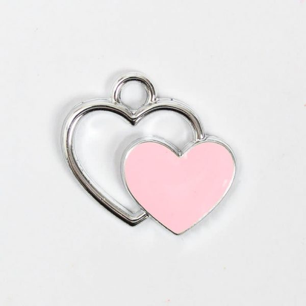 Καρδιά μεταλλική διπλή με σμάλτο ροζ