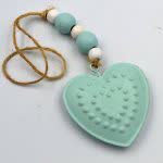 Καρδιά μεταλλική κρεμαστή σιέλ με ξύλινες χάντρες