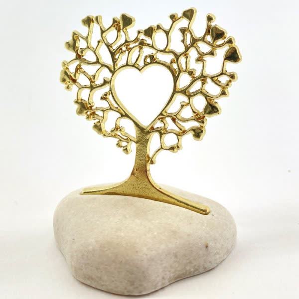 Βότσαλο καρδιά σε δέντρο χρυσό 7 εκ. x 6 εκ. (1 τεμ.)