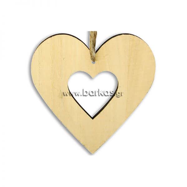 Καρδιά ξύλινη με τρύπα φυσικό 8εκ. (1τμχ.)