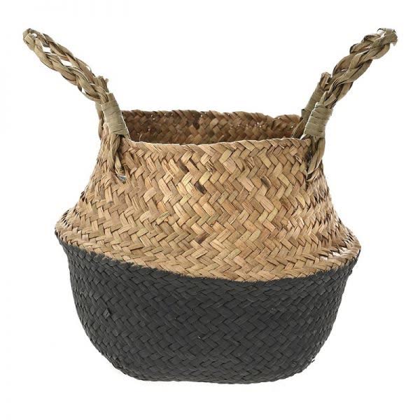 Καλάθι ψάθινο με χερούλια φυσικό-μαύρο 17 εκ. x 20 εκ.